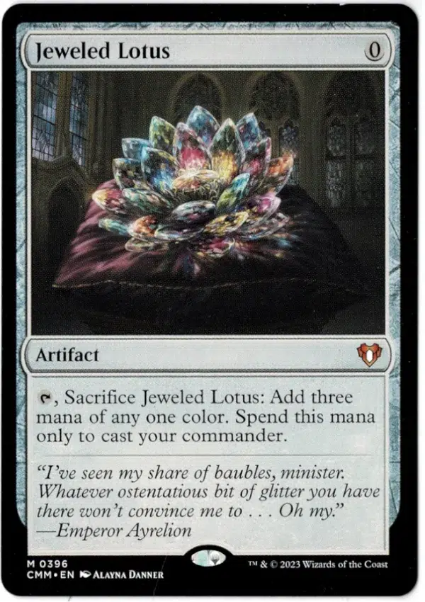 T, Sacrifice Jeweled Lotus: Add three mana of any one color. Spend this mana only to cast your commander.