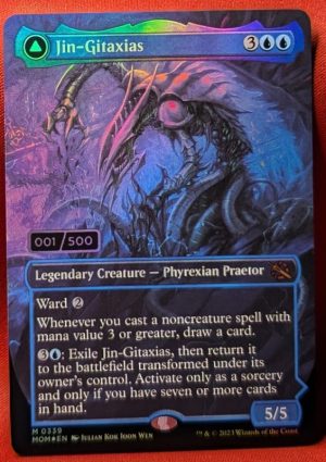 3U: Exile Jin-Gitaxias, then return it to the battlefield transformed under its owner’s control. Activate only as a sorcery and only if you have seven or more cards in hand.