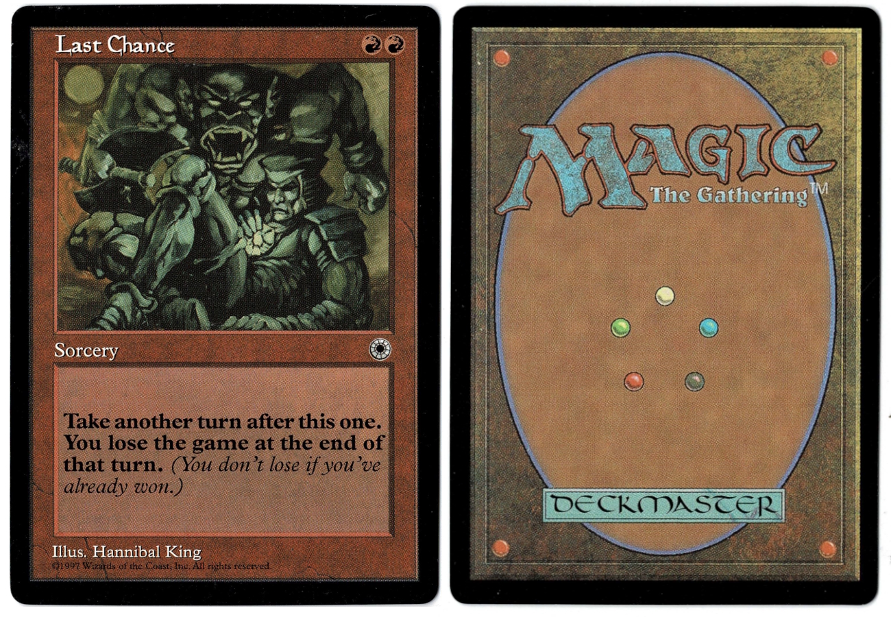 Take another turn after this one. You lose the game at the end of that turn. (You don’t lose if you’ve already won.)