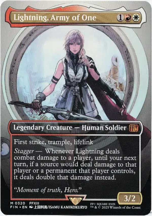 Stagger — Whenever Lightning deals combat damager to a player, until your next turn, if a source would deal damage to that player or a permanent that player controls, it deals double that damage instead.