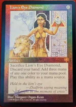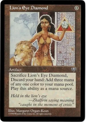 Sacrifice Lion’s Eye Diamond, Discard your hand: Add three mana of any one color to your mana pool. Play this ability as a mana source.