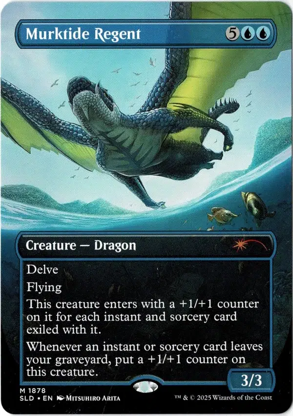 Murktide Regent enters the battlefield with a +1/+1 counter on it for each instant and sorcery card exiled with it.