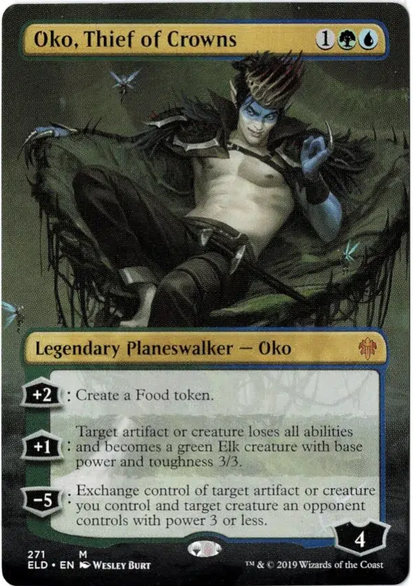 [+1]: Target artifact or creature loses all abilities and becomes a green Elk creature with base power and toughness 3/3.