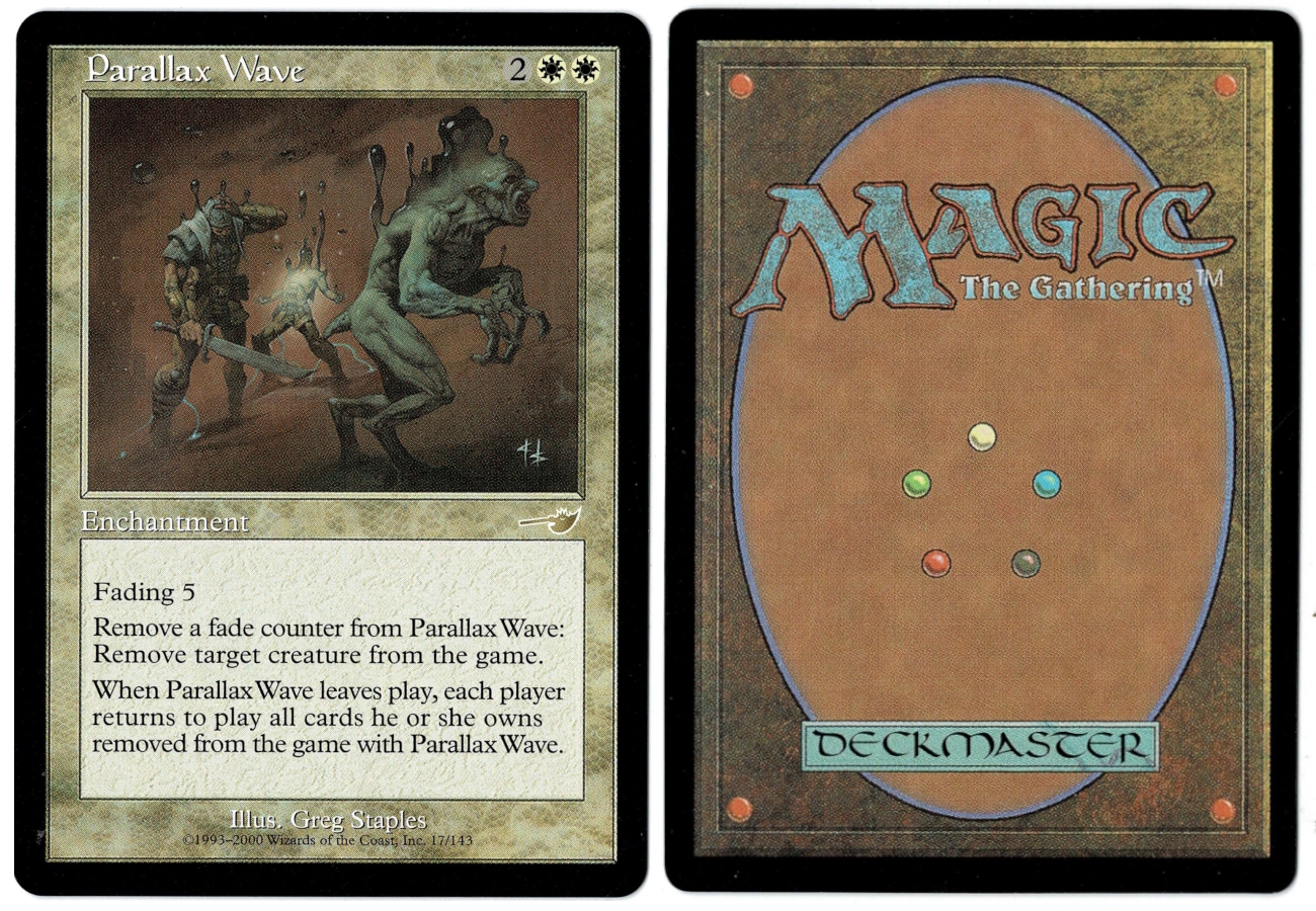 When Parallax Wave leaves play, each player returns to play all cards he or she owns removed from the game with Parallax Wave.