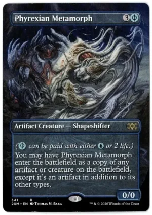 You may have Phyrexian Metamorph enter the battlefield as a copy of any artifact or creature on the battlefield, except it’s an artifact in addition to its other types.