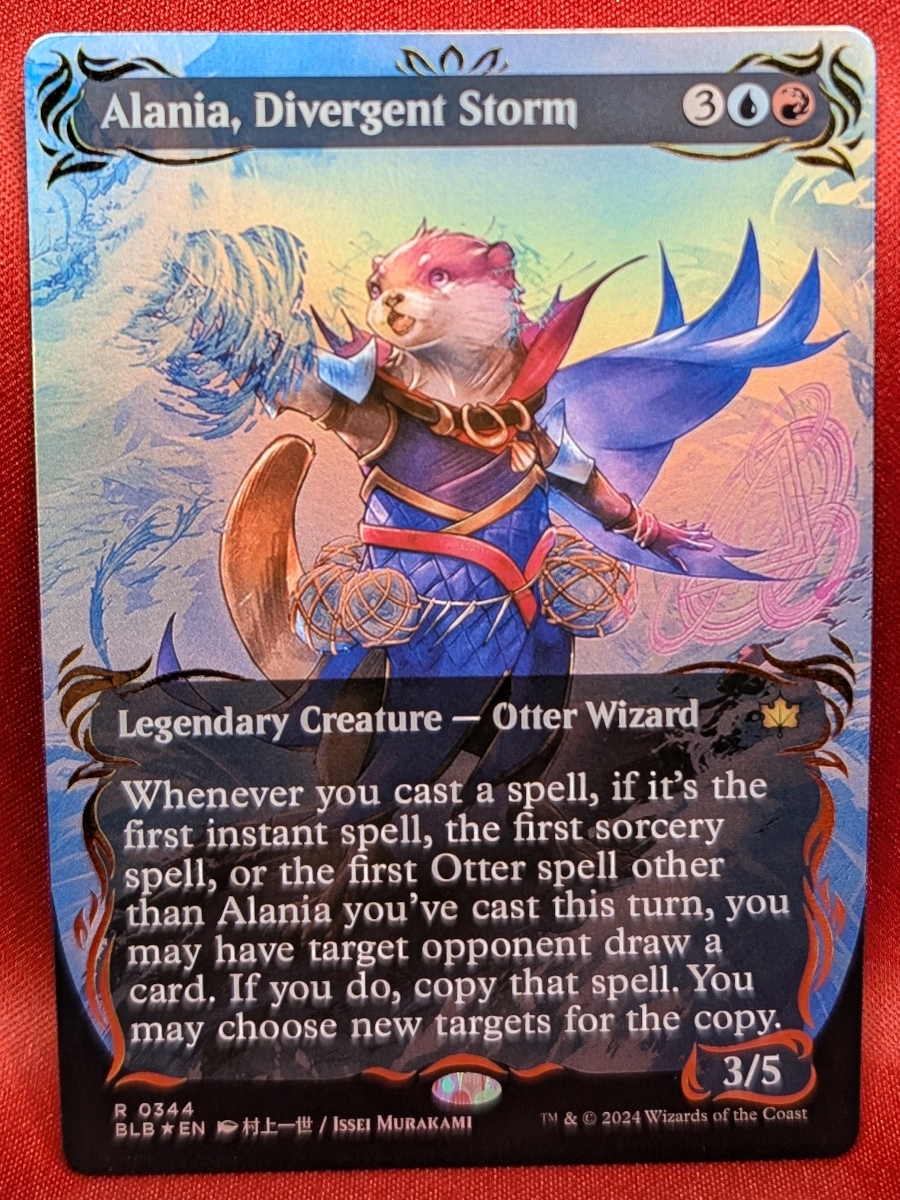 Whenever you cast a spell, if it’s the first instant spell, the first sorcery spell, or the first Otter spell other than Alania you’ve cast this turn, you may have target opponent draw a card. If you do, copy that spell. You may choose new targets for the copy.