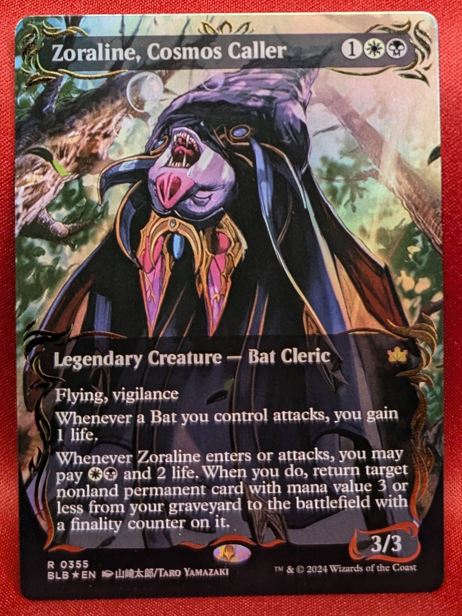 RAISED FOIL Zoraline, Cosmos Caller (Borderless) from Bloomburrow Magic the Gathering Proxy