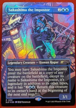 You may have Sakashima the Impostor enter the battlefield as a copy of any creature on the battlefield, except its name is still Sakashima the Impostor, it’s legendary in addition to its other types, and it gains “2UU: Return this creature to its owner’s hand at the beginning of the next end step.”-