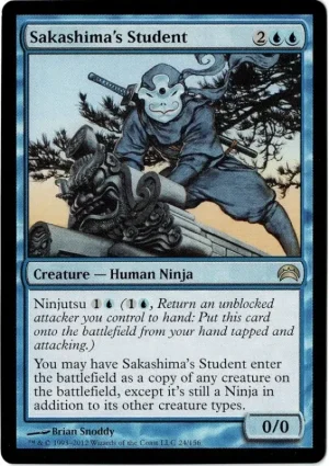You may have Sakashima’s Student enter the battlefield as a copy of any creature on the battlefield, except it’s a Ninja in addition to its other creature types.