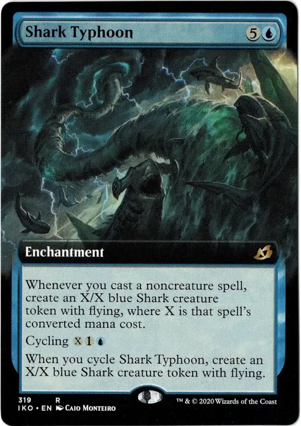 When you cycle Shark Typhoon, create an X/X blue Shark creature token with flying.