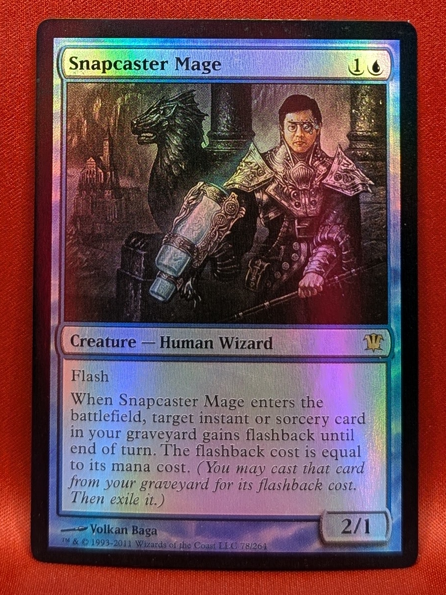 When Snapcaster Mage enters the battlefield, target instant or sorcery card in your graveyard gains flashback until end of turn. The flashback cost is equal to its mana cost. (You may cast that card from your graveyard for its flashback cost. Then exile it.)