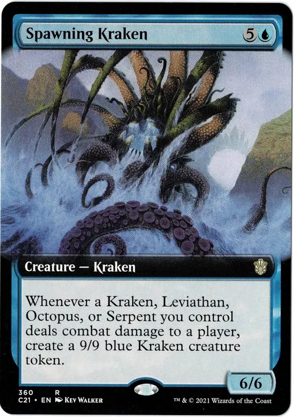 Whenever a Kraken, Leviathan, Octopus, or Serpent you control deals combat damage to a player, create a 9/9 blue Kraken creature token.