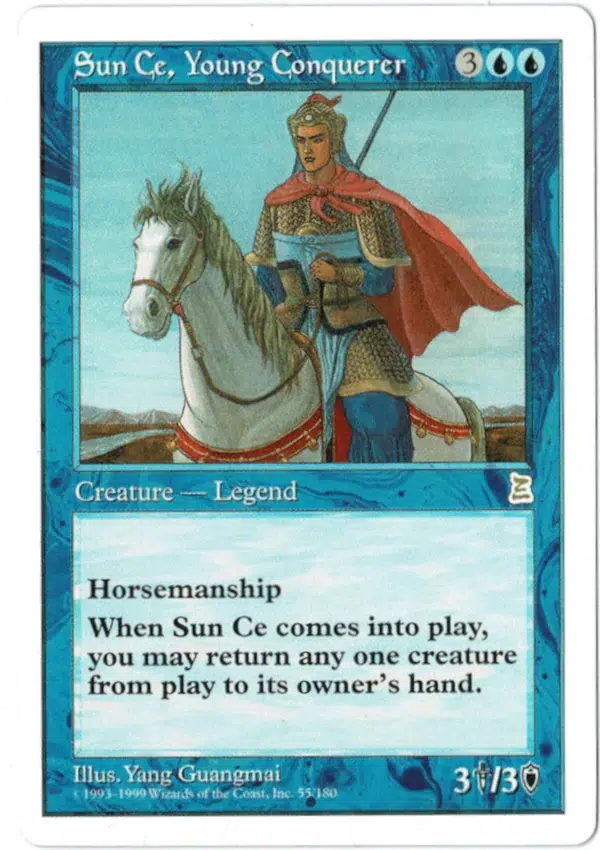 When Sun Ce comes into play, you may return any one creature from play to its owner’s hand.