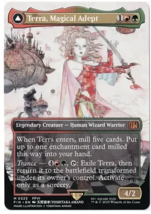When Terra enters, mill five cards. Put up to one enchantment card milled this way into your hand.