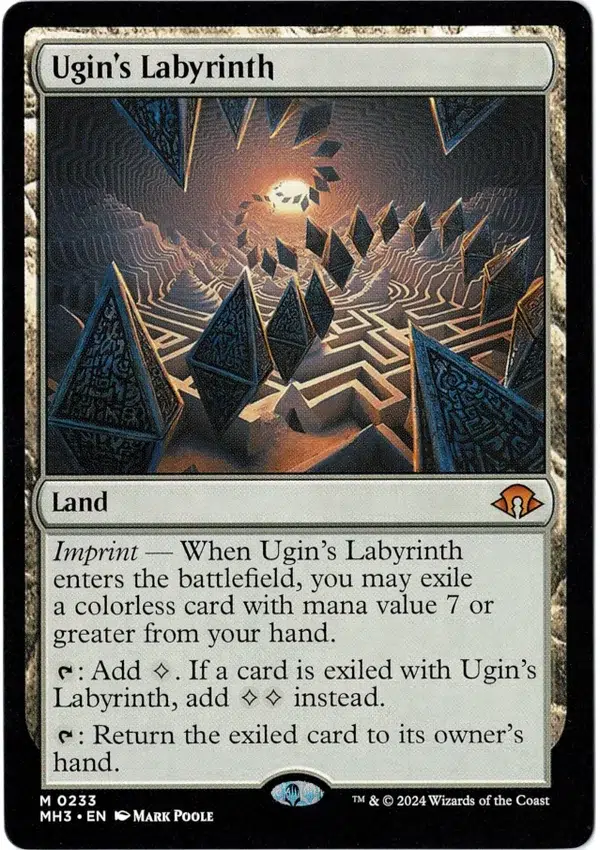 Imprint — When Ugin’s Labyrinth enters the battlefield, you may exile a colorless card with mana value 7 or greater from your hand.