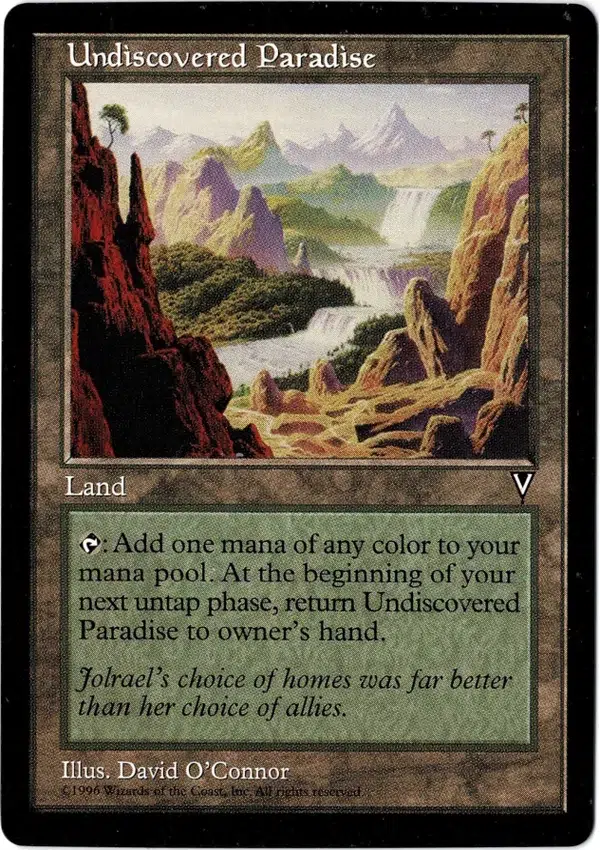 T: Add one mana of any color to your mana pool. At the beginning of your next untap phase, return Undiscovered Paradise to owner’s hand.