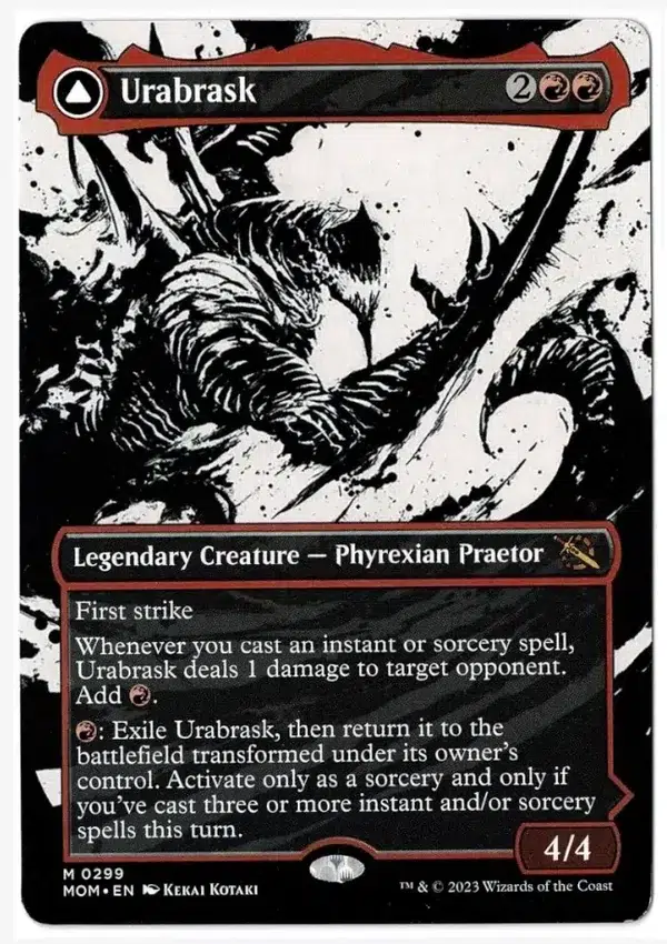 R: Exile Urabrask, then return it to the battlefield transformed under its owner’s control. Activate only as a sorcery and only if you’ve cast three or more instant and/or sorcery spells this turn.