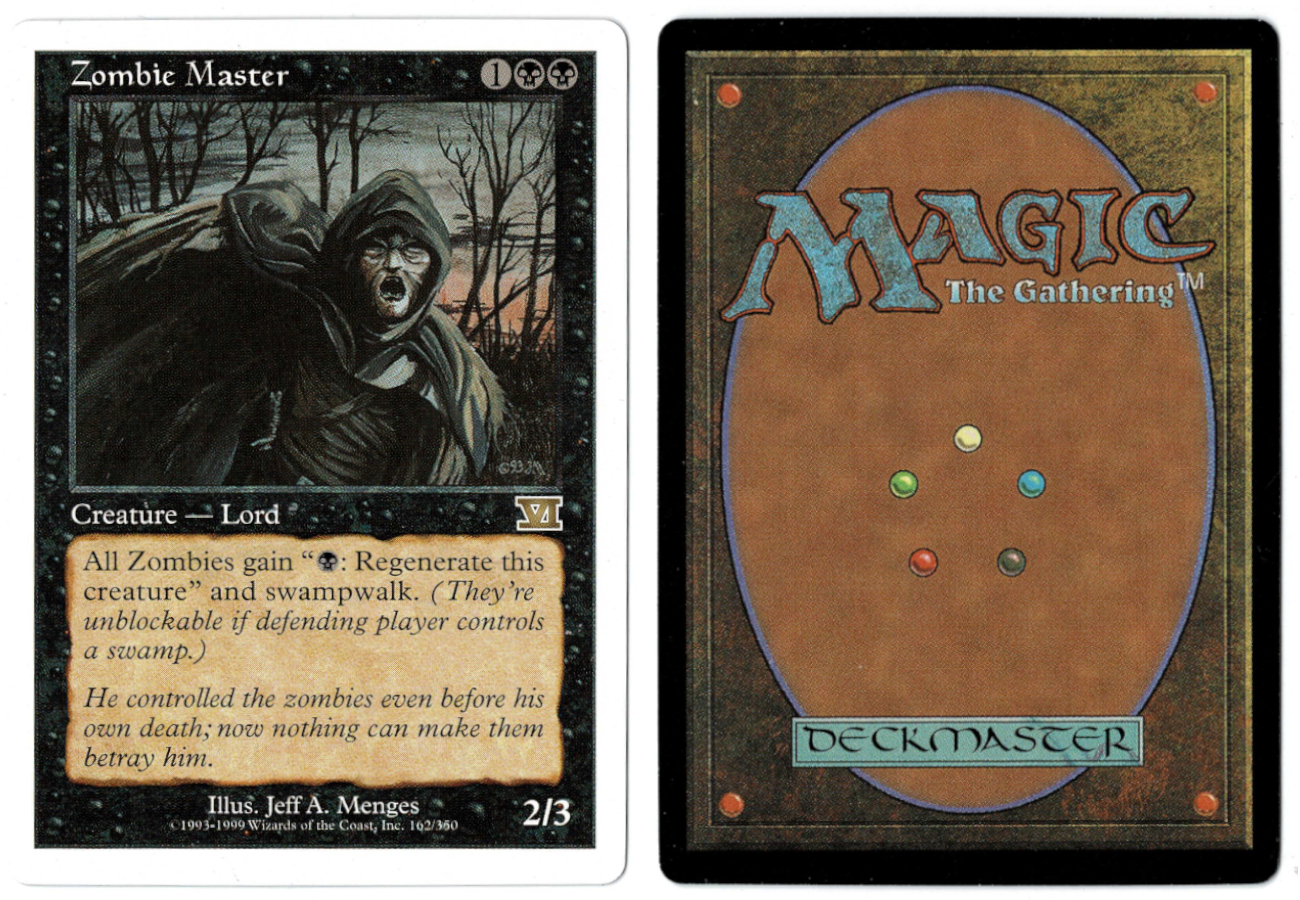 All Zombies gain “B: Regenerate this creature” and swampwalk. (They’re unblockable if defending player controls a swamp.)