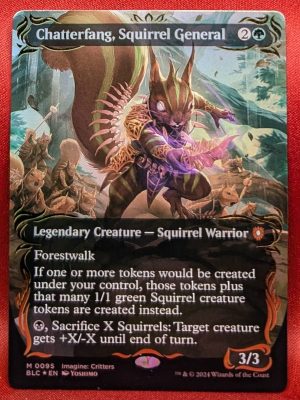RAISED FOIL Chatterfang, Squirrel General (Borderless) from Commander:Bloomburrow Magic the Gathering Proxy