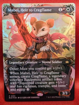 RAISED FOIL Mabel, Heir to Cragflame (Borderless) from Bloomburrow Magic the Gathering Proxy